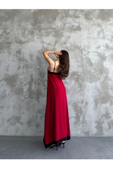 Yırtmaç detaylı, ince askılı, maxi boy elbise