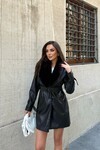 KÜRKLÜ DERİ KABAN CEPLİ KEMER DETAYLI