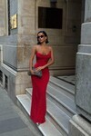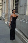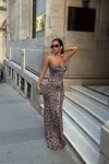Sırt Zincir Detaylı Gloplu Yırtmaçlı Maxi Boy Elbise Full Likralı Taşlı Kumaş
