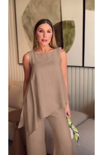 Asimetrik Bluz & Pantolon İkili Takım