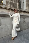 TRİKO BELDEN KUŞAK DETAYLI ELBİSE