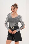 TRİKO VARAK BASKILI KAZAK KOLLAR DETAYLI