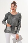 VARAK BASKILI TRİKO KAZAK CİFT CEPLİ