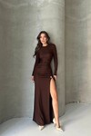 DERİN YIRTMAÇLI ELBİSE AKSESUAR DETAYLI