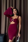 Fermuar kapamalı, tek kol ispanyol, pencere detaylı, yırtmaçlı, mini elbise