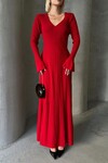 İNCE BEL V YAKA MAXİ TRİKO ELBİSE