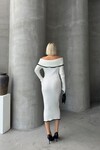 KAYIK YAKA TRİKO ŞERİTLİ ELBİSE