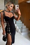 YIRTMAÇ DETAYLI KUŞ GÖZÜ ELBİSE