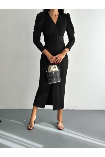 TRİKO MAXİ BOY KEMER DETAYLI ELBİSE