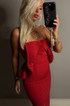 STRAPLEZ ELBİSE FİYONK DETAYLI YIRTMAÇLI