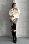 Deri Detaylı Premium Peluş Mont