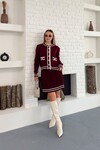 TRİKO TAKIM DÜĞME DETAYLI ETEK PİLİSELİ