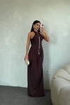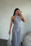 SİLVER DÜĞME DETAYLI UZUN ELBİSE